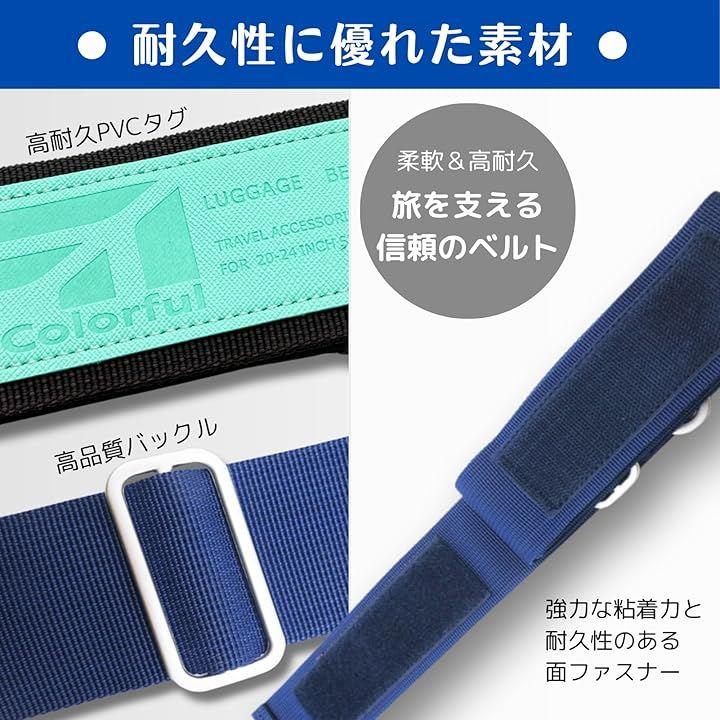 「耐久性に優れた素材」強力な粘着力と耐久性のある面ファスナーで、キャリーケースをしっかりと固定し、空港での手荒な扱いや移動中の衝撃から中身を守ります。