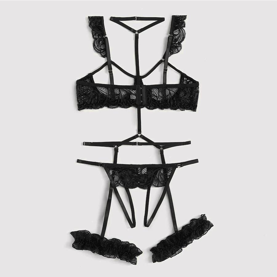 [TXWZM] Sexy Lingerie, Extreme Fishnet, Ultra High-Leg Leotard, Perforated, Open-Cropped Babydoll, Plus Sizes, Open