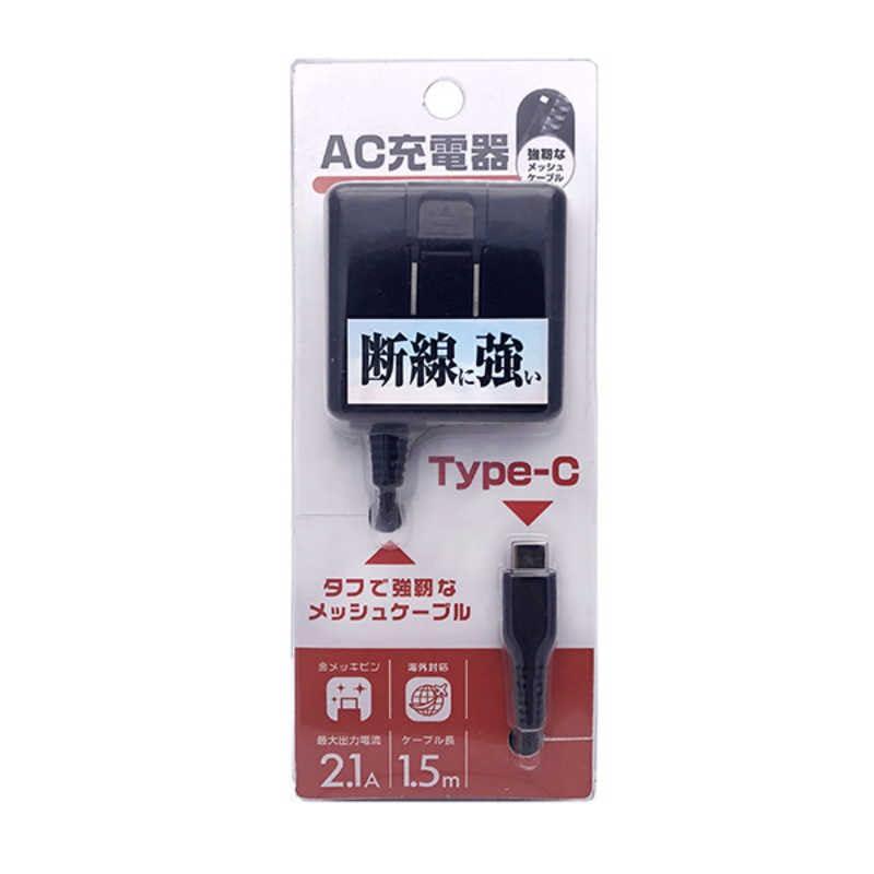 [Type-C]ケーブル一体型AC充電器 2.1A ストロングケーブル(1.5m) ブラック AC-CST21MK [10W]
