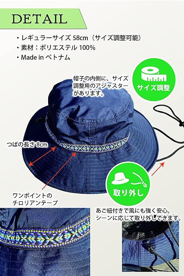 ・*UVカット、撥水加工、あご紐つき、サイズ調整可能、機能が盛りだくさんのアウトドアハットです(^^)かわいいチロリアンテープがワンポイントアクセント。