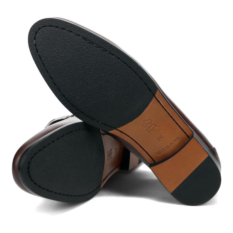 | オンオフ兼用で合わせたいモカシンローファー 【素材】 ワックスを馴染ませた上品な艶のアッパーは、履きやすく使い込むほどに味のある表情に変化してくれます。 ライニングには通気性が高く滑らかな足当りのカウライニング、インソールにはクッションのきいたラテックス素材を使用。 【デザイン】 シンプルかつシックな国産ドレスカジュアルモカシンローファー。カジュアルからフォーマルな着こなしまで合わせやすいスマートなラウンドフォルムのアーモンドトゥは、こなれた大人の雰囲気を演出してくれます。 アウトソールにはハーフラバーとトップリフトを付けて実用面も充実させました。製法も長く使えるよう、ソールの返りが良く軽量な作りのマッケイ製法を採用しています。 カジュアルな普段使いやビジネスシューズとしてスーツに合わせたりと、様々なシーンで活躍するスリッポンタイプは、1足は持っておきたいアイテムです。 【サイズ】 ※普段通常の革靴で25.5cm、スニーカーで26.5-27cmを着用するスタッフで<25.5cm>でジャストサイズでした。 ※サイズ感は、個人差がございますのであくまで参考程度にお考えください。 ■ブランド...whoop'-de-doo' costume no age ■カラー...BLACK,DARK BROWN ■アッパー素材....牛革 ■底材.....レザー×合成ラバー ■ヒール...約2.5cm ■日本製 *上記は全て25.5cmで計測した数値です。 *多少の誤差が生じる場合がございますので予めご了承下さい。 whoop de doo co.,ltd whoop'-de-doo' フープディドゥ |