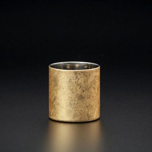 石川県金沢市の伝統工芸として受け継がれた「金沢箔」を漆磨カップに採用しています。職人が手作業で貼り合わせる「切り回し」という技法を用いているので、2つとして同じ模様はありません。仕上げは山中塗の伝統的な拭き漆を施し、金箔の風合いをできるだけ残しています。