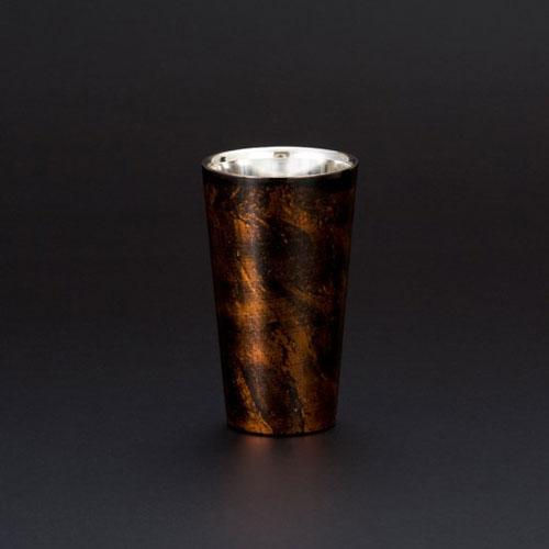 カップ本体は18-8ステンレスを用い、新潟県燕三条で成形、研磨しています。内側上部は鏡面仕上げ、下部はらせん状の磨き筋をつけることで、ビールを注いだ瞬間に勢いよくクリーミーな泡が生まれます。二重構造になっているため水滴が付きにくく 、保冷性にも優れています。ステンレス素材の機能性を生かしつつ、外側を漆で仕上げることで、しっとりとした質感がプラスされ、口あたりもやわらかです。