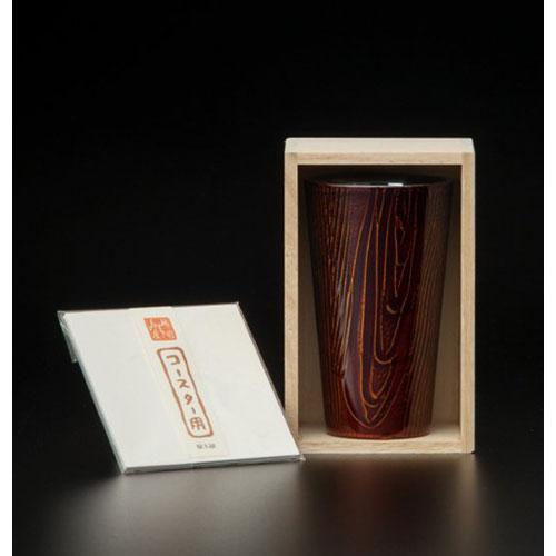 材質:18-8ステンレス 漆塗装付属品:和紙コースター 桐箱(蓋は桐風ベニヤ)大きさ:本体…直径7.0cm×高さ12.1cm 容量約270ml和紙コースター…9cm角×10枚箱:幅8.9cm×奥行8.9cm×高さ14.2cm重さ:約220g(本体のみ)