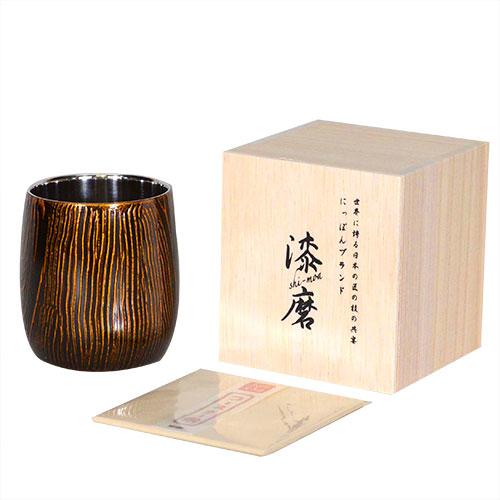 材質:18-8ステンレス 漆塗装付属品:和紙コースター 桐箱(蓋は桐風ベニヤ)大きさ:本体…直径7.4cm×高さ8.5cm 容量約250ml和紙コースター…9cm角×10枚箱:幅9.7cm×奥行9.7cm×高さ10.6cm重さ:約145g(本体のみ)