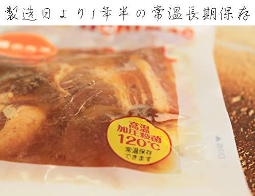 通常1-5営業日で発送じっくりと煮込んだ、柔らかい豚の角煮。無添加へのこだわり:化学調味料 保存料 食品添加物不使用賞味期限:製造日より1年半/独自の製法により常温保存可能原材料:豚肉(イタリア)、玉ねぎ、生姜、醤油、砂糖、みりん、酒、(一部に豚肉・小麦・大豆を含む)1包 100g当り:エネルギー 288 kcal たんぱく質 9.4 g 脂質 20.8 g 炭水化物 12.3 g 食塩相当量 1.3 g【重要】メーカーによる商品リニューアルに伴いパッケージ(内容量も含む)変更が行われた場合、新パッケージでお届け致します事ご了承願います。
