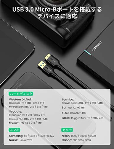 USB 3.0 Type A to Micro-B変換ケーブルです。USB 3.0 Micro-Bポートを搭載するSamsungスマホやタブレット、外付けHDD等に充電とデータ転送を実現します。5Gbps(Max)に対応するUSB3.0マイクロケーブルです。USB 2.0(480bps)より約10倍速い転送速度であり、ビデオ、ファイル等を僅か数秒間で共有可能です。幅広い互換性があるUSB 3.0 充電ケーブルです。Micro B端子はGalaxy S5、Galaxy Note 3、Galaxy Note Pro 12.2、Pentax カメラー、ポータブル USB 3.0 外付けHDD/SSD等に適用です。多重シールド、耐久性があるMicro B USBケーブルです。金メッキコネクタ、錫メッキ銅線、箔と編組シールドの組み合わせで、最高の性能を発揮し、エラーフリーの安定したデータ転送と高速充電を実現します。プラグアンドプレイ、収納しやすい USB データケーブルです。ドライブのインストールは必要ないです。18ヶ月の保障期間、ご安心に使用下さい。