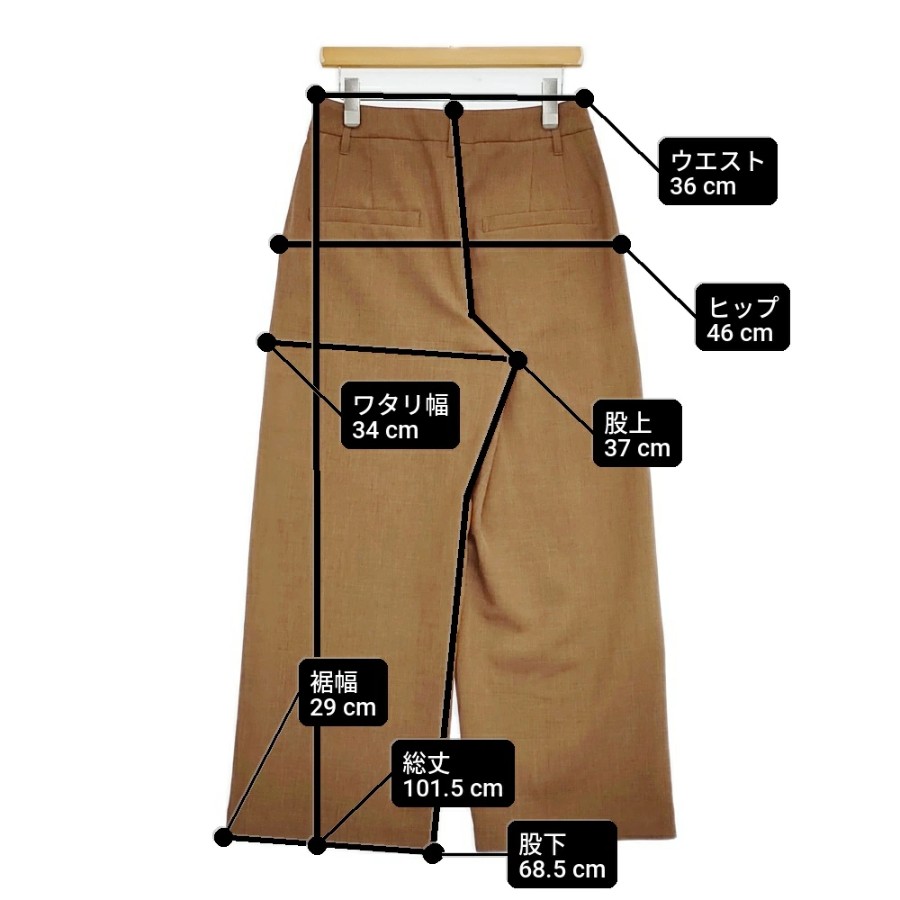 | 実寸サイズ | 肩幅:約40.5cm 着丈:約87cm 身幅:約43cm ウエスト:約36cm 股上:約37cm 股下:約68.5cm ヒップ:約46cm ワタリ幅:約34cm 裾幅:約29cm 備考 身幅おおよそ ※採寸画像がある商品はハンガーに吊るした状態での計測のため、平置きでの採寸とは差が生じる場合がございます。平置きでの実寸サイズをご希望の場合は、ご購入前に必ずご質問ください。 ※記載以外のサイズが合わないことを理由とした返品はできませんので、 記載部分以外で実寸サイズの気になる箇所があれば必ず購入前にご質問ください。 |