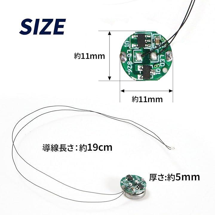 商品仕様 : サイズ: 直径 約1.1cm、厚み 約0.4cm、リード線 19cm カラー: ホワイト、グリーン、ブルー、ライトブルー、パープル、オレンジの6色 セット内容: 同色のLEDライト 4個セット スイッチ方式: マグネット磁気スイッチ(磁石を近づけることでON/OFF切り替え) 使用電池: ボタン電池 CR927(別売り)