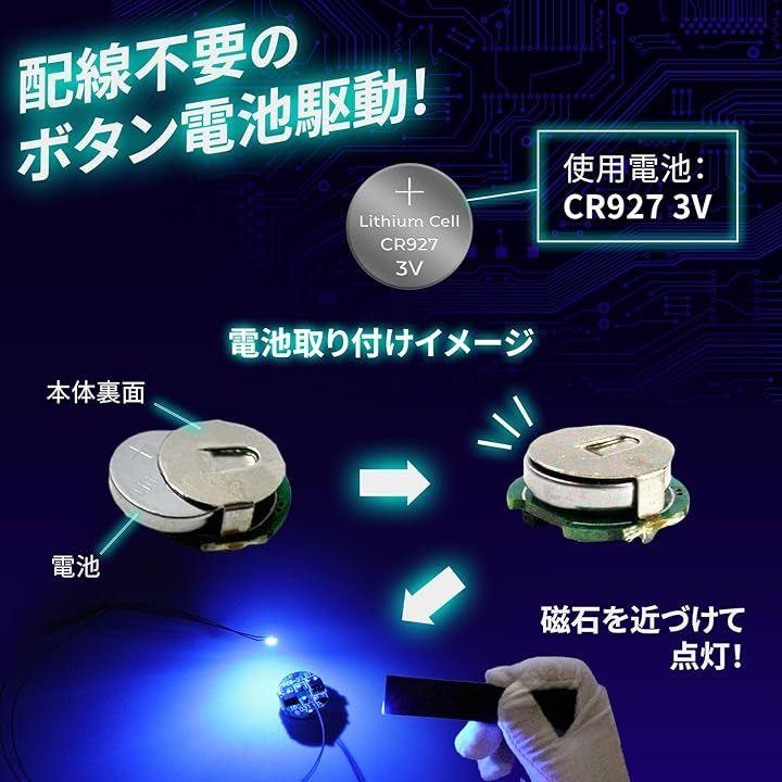 フィギュア・模型・ジオラマ・ミニカーなど様々な立体物の電飾パーツに。磁石を近づけるだけで点灯・消灯できるスマート仕様。