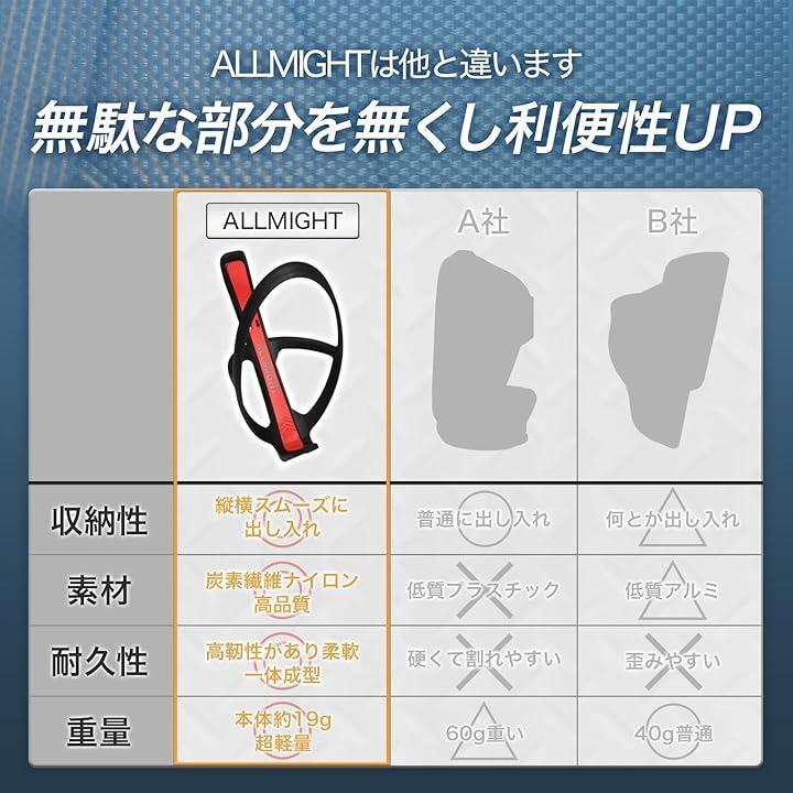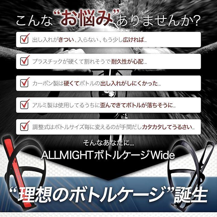 「サイクリングライフを快適に」ALLMIGHTのボトルケージを利用することで水分補給をスムーズに行えるため疲れにくくなり、ロングライドや競技などでのパフォーマンス向上に繋がることが期待できます。