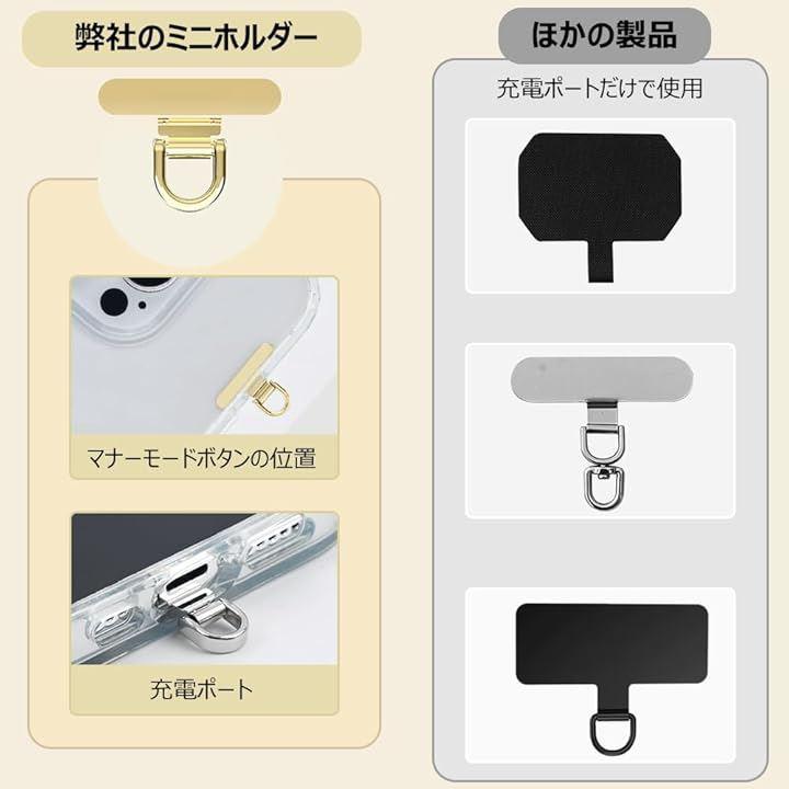 「創造的なデザイン-ミニホルダー」:このスマホホルダーはミニタイプで、スマホのマナーモードボタンの位置に合わせて装着します。
