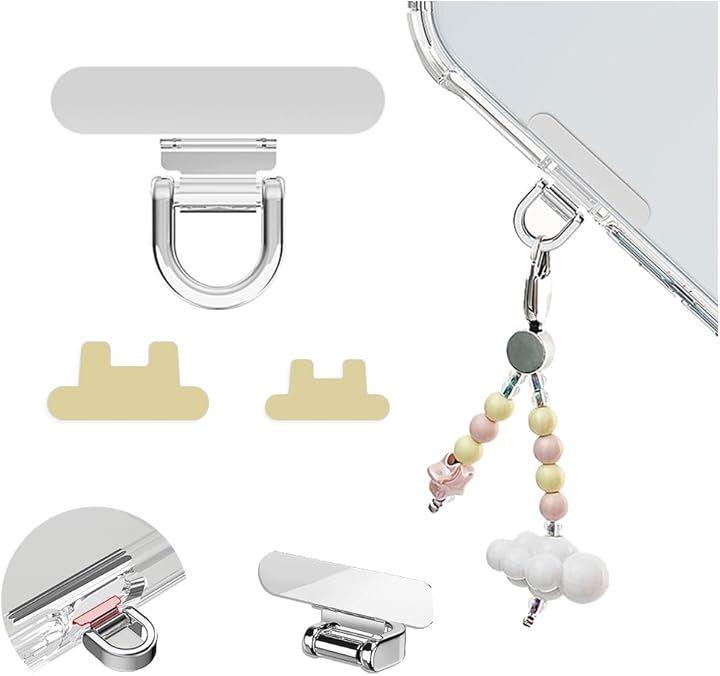 Ultra-mini smartphone strap holder with manhole, 320-degree rotation, and two anti-scratch films. Ultra-thin (0.2mm) design with a foldable design that prevents slippage and prevents falling. Made of stainless steel with a metal tag patch. Slim and durable, compatible with all models, no impact on charging, and prevents loss.