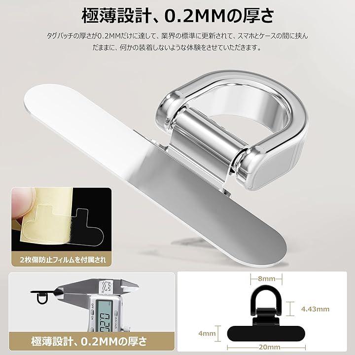 「極薄設計、0.2MMの厚さ」:目前、この製品は薄さが0.25mm又は0.3mmですが、本社は製品の装着感と互換性を強化されるように、タグパッチの厚さが0.2MMだけに達して、標準に更新されて、スマホとケースの間に挟んだままに、何かの装着しないような体験をさせていただき、スマホホルダーが極薄設計なので、スマホが浮き上がる問題点と互換性をご心配しないでください。