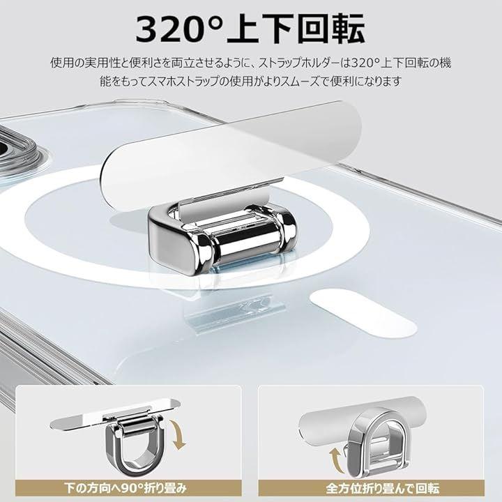 「320°上下回転、曲がれ設計」:使用の実用性と便利さを両立させるように、ストラップホルダーは320°上下回転と曲がれ設計の機能をもって、上下に320°自由に回転できるので、スマホストラップの使用がよりスムーズで便利になります。