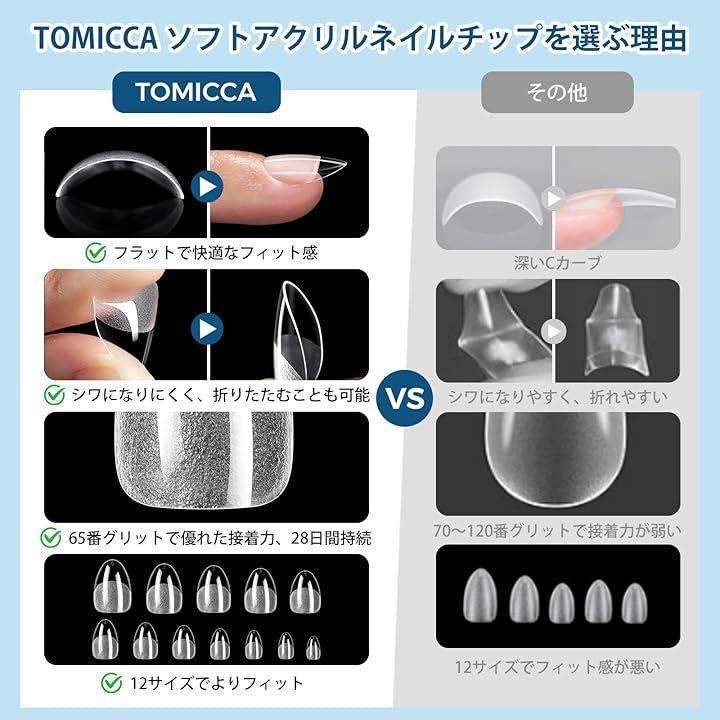 プロ仕様のウルトラマットネイルチップ:TOMICCAの新しい人工ネイルチップは、改良されたウルトラマット仕上げで、自爪にしっかりと密着するため、欠ける心配がありません。