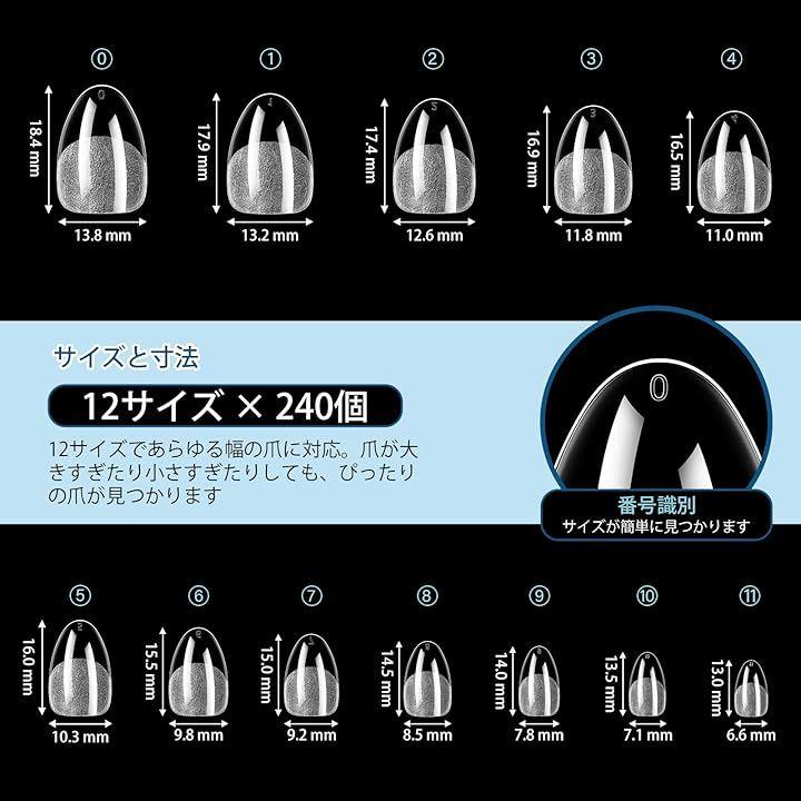 1箱に12種類のサイズがあり、あらゆる爪のタイプに対応します。