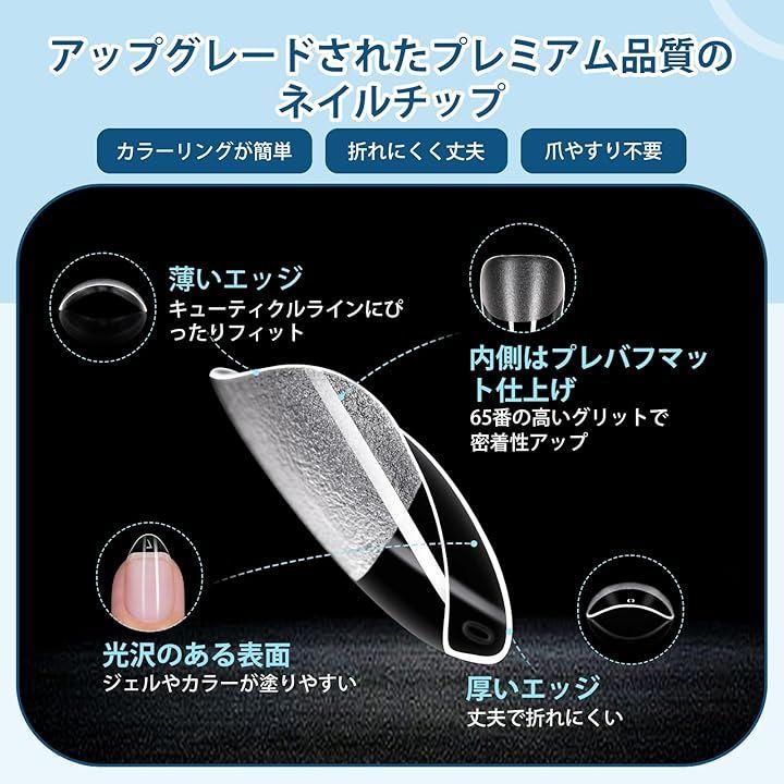 504個、12サイズ、大容量:超ショートアーモンド型ネイルチップ504個入り。