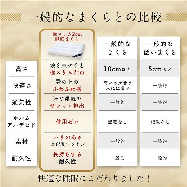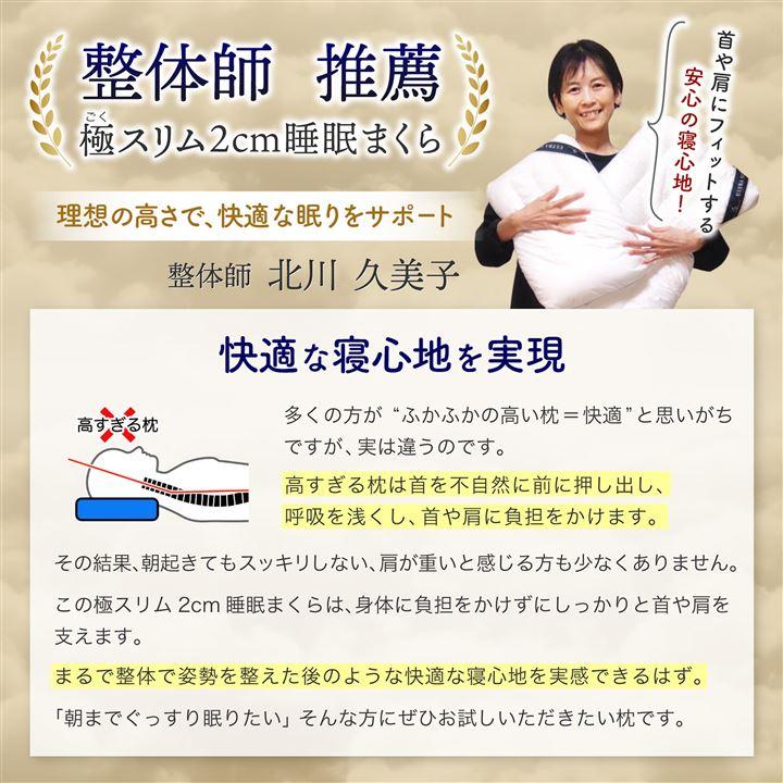 首や肩の負担をやわらげる「極スリム2cm睡眠まくら」