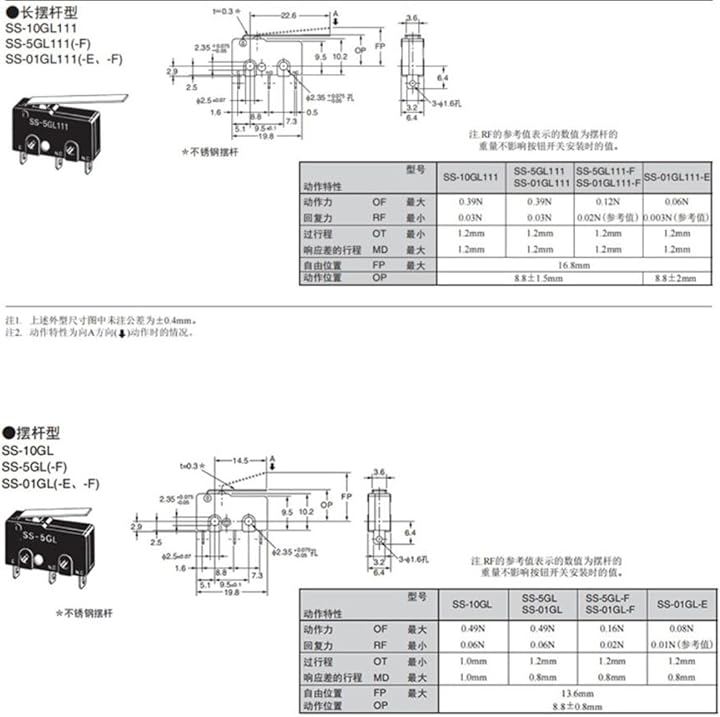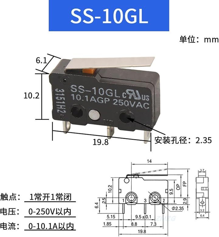 Ultra-small basic microswitch, miniature microswitch, hinge/lever type, solder terminal, rated 5A, 8 pieces