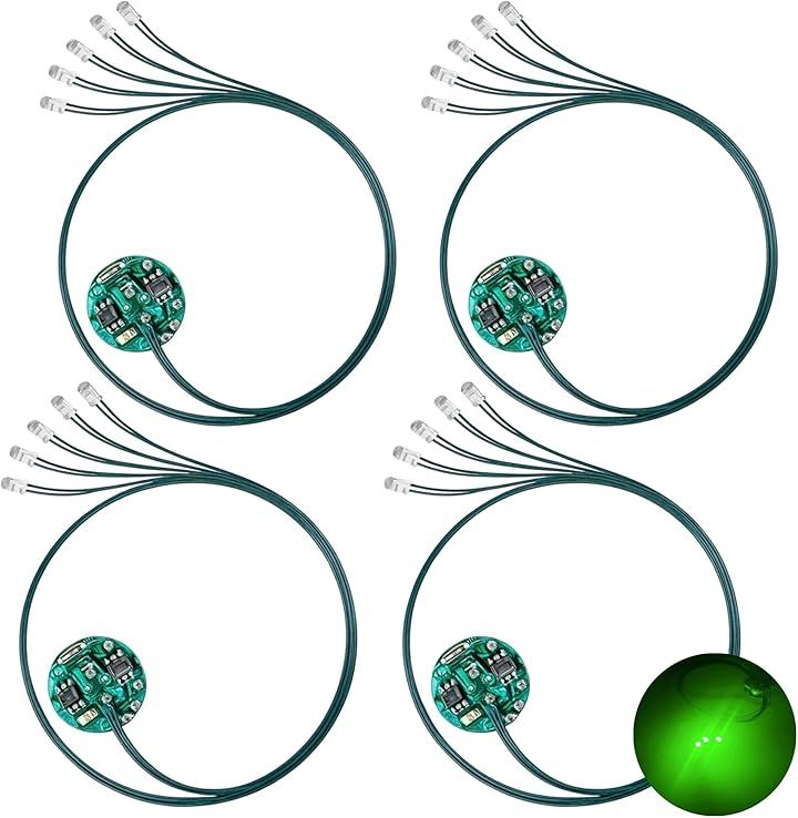 [商品詳細] ・リード線付き電飾 4個セット(個包装) ・基盤サイズ:直径 約11.2mm 厚さ 約5mm ・LEDサイズ:約 1.3x1.5mm ・リード線長さ:約19cm ・点灯モード:点灯/点滅/ゆっくり点滅 ・操作方法:磁気スイッチ式(磁石を近づけてON/モード切替/OFF) ・対応電池:CR927(別売り) *電池・磁石は付属していません。