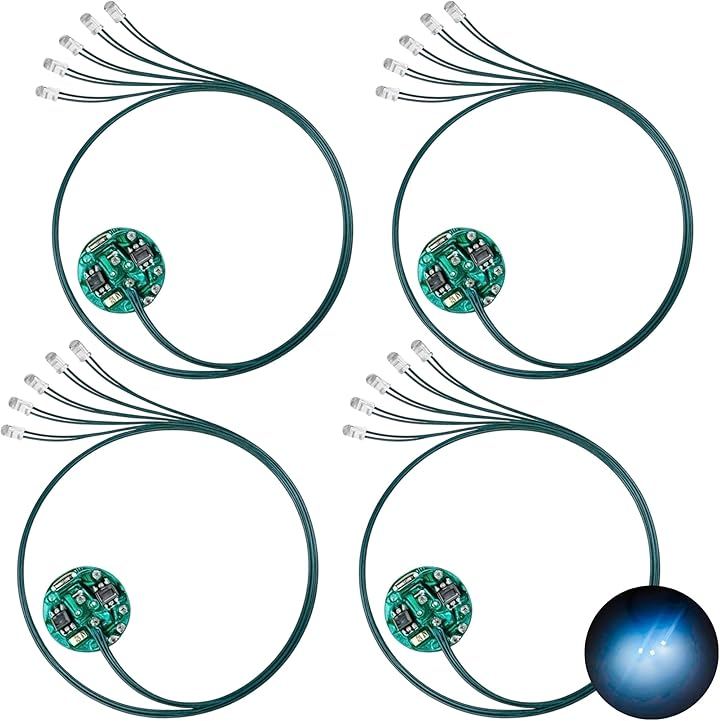 [商品詳細] ・リード線付き電飾 4個セット(個包装) ・基盤サイズ:直径 約11.2mm 厚さ 約5mm ・LEDサイズ:約 1.3x1.5mm ・リード線長さ:約19cm ・点灯モード:点灯/点滅/ゆっくり点滅 ・操作方法:磁気スイッチ式(磁石を近づけてON/モード切替/OFF) ・対応電池:CR927(別売り) *電池・磁石は付属していません。