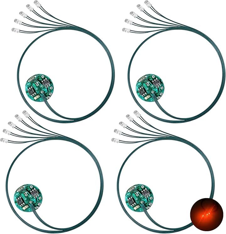 [商品詳細] ・リード線付き電飾 4個セット(個包装) ・基盤サイズ:直径 約11.2mm 厚さ 約5mm ・LEDサイズ:約 1.3x1.5mm ・リード線長さ:約19cm ・点灯モード:点灯/点滅/ゆっくり点滅 ・操作方法:磁気スイッチ式(磁石を近づけてON/モード切替/OFF) ・対応電池:CR927(別売り) *電池・磁石は付属していません。