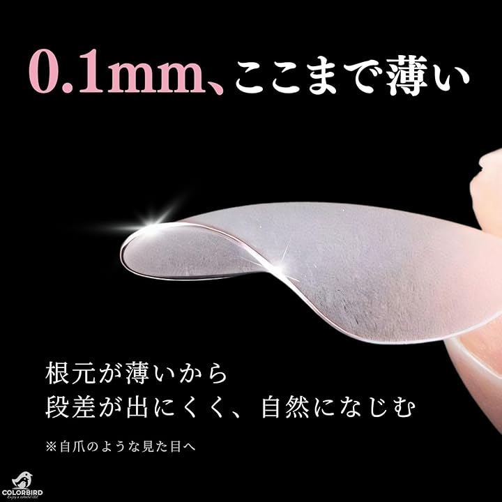 「自然なフィット感で指先を彩る」超薄型後端部(0.1mm)で自然なフィット感を実現。