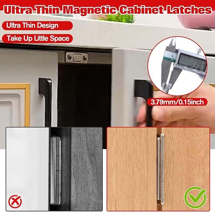 「強力な磁力」この磁気ドアラッチには磁石が含まれており、常に開いているキッチンキャビネットのドアや引き出しを閉じた状態に保ちます。