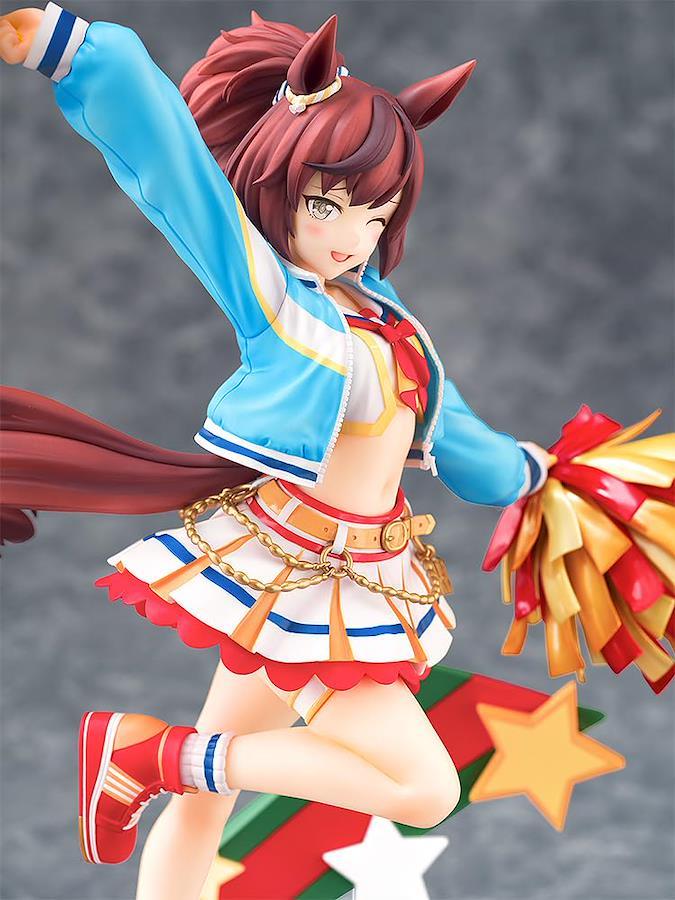 ゲーム『ウマ娘 プリティーダービー』より「ナイスネイチャ」を1/7スケールでフィギュア化。ストーリーイベント「轟け、エール!トレセン学園応援団」にて登場した勝負服[RUN&WIN]を纏い、照れ笑いを浮かべつつも応援に精を出す姿で立体化しました。ポニーテールに結ばれた髪、外された耳カバーなど普段と違う印象のスタイルや、応援には欠かせない煌びやかなポンポン、大胆なヘソ出しのチアガール風の衣装など、ナイスネイチャの魅力を詰め込んだ作りになりました!台座についても本人の輝きに負けない、ポップでカラフルなデザインで仕上げています。また、オプションとして「…たはは。」という声が聞こえてきそうな固有スキル使用時の笑顔パーツも付属致しますので、お好みの姿でナイスネイチャに応援されてください! (C) Cygames, Inc. 全高:約290mm 掲載の写真は実際の商品とは多少異なる場合があります。 原型制作:間崎祐介 彩色:佐倉(ふくふく)