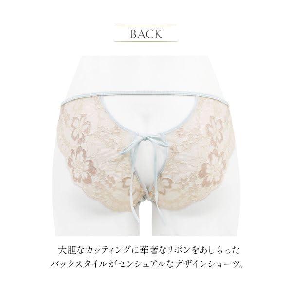 音楽が心と身体を包み纏うような、感性を優しく彩るコレクション【Waltz】。リズムとスタイルが調和し、あなたの内なる美しさを静かに引き立てます。やわらかなベイビーブルーは、可憐で優しい余韻。深みのあるネイビーは、凛とした大人の魅力。肌に溶け込むヌーディなスキンベージュが、あなたの素肌をより魅力的に彩ります。大胆なカッティングに華奢なリボンをあしらったバックスタイルがセンシュアルなデザインショーツ。大胆かつ繊細なラインが、女性らしいシルエットを美しく演出します。フロントには肌触り柔らかな生地を裏打ち。バックリボンは自分で結びほどきが可能です。同コレクション【Waltz】のランジェリーとのコーディネートがおすすめです。レディース