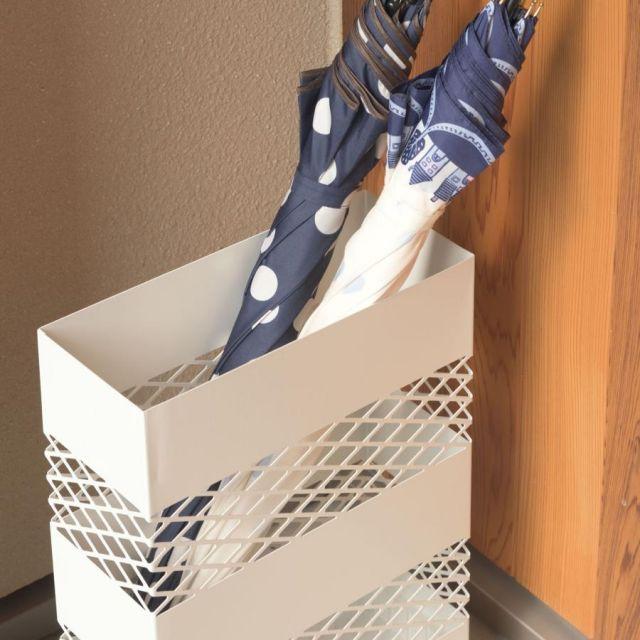 ◎大小様々な型抜きデザインを施した、シンプルながらインテリア性の高い傘立て。◎本体重量が2kgとほどよく重量のある仕様なので、安定感も問題なしです。◎底面には水受けトレイが付いているので傘の水滴が漏れ出す心配がなく、お手入れも簡単です。◎ご自宅でのご使用はもちろん、オフィスやエントランスの傘立てとしてのご利用にも最適です。