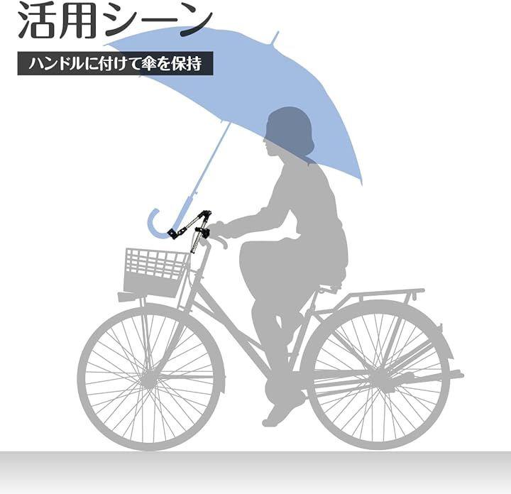 「1つは持ちたいアイテム」手に持たずに傘をさせる傘スタンドはベビーカー、自転車、電動自転車、車椅子などに取り付けることができ傘をささなくとも両手が使える頼りになるアイテムです。