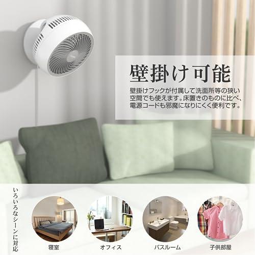 壁掛け:サーキュレーターの底部にフック穴付、場所を取らずに壁に掛けてもいいです。