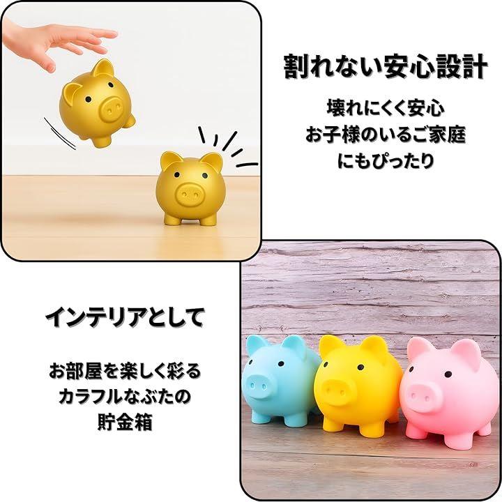 「割れない安心設計」この貯金箱は、割れない素材で作られているため、小さなお子様がいる家庭でも安心してお使いいただけます。