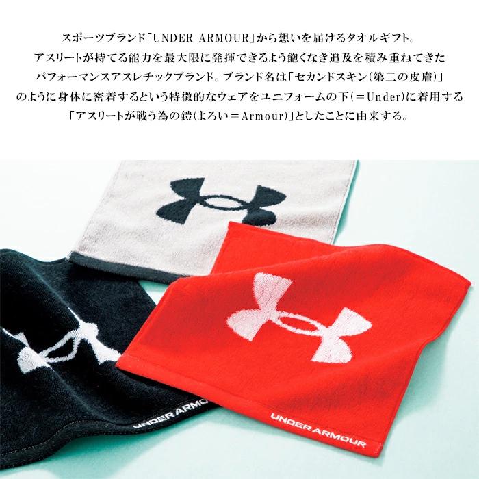 スポーツブランド「UNDER ARMOUR」から想いを届けるタオルギフト。アスリートが持てる能力を最大限に発揮できるよう飽くなき追及を積み重ねてきたパフォーマンスアスレチックブランド。ブランド名は「セカンドスキン(第二の皮膚)」のように身体に密着するという特徴的なウェアをユニフォームの下(=Under)に着用する「アスリートが戦う為の鎧(よろい=Armour)」としたことに由来する。