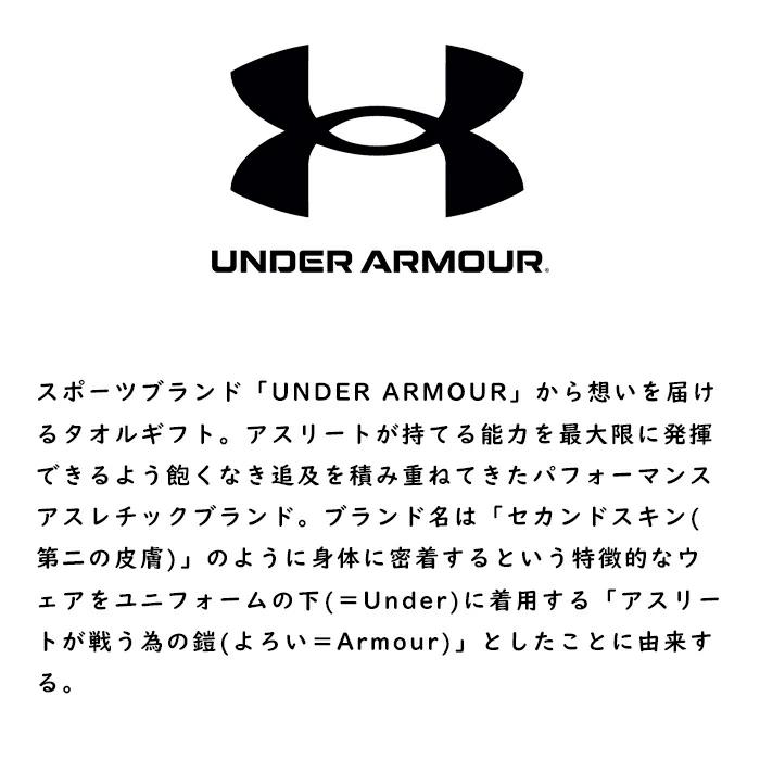 スポーツブランド「UNDER ARMOUR」から想いを届けるタオルギフト。アスリートが持てる能力を最大限に発揮できるよう飽くなき追及を積み重ねてきたパフォーマンスアスレチックブランド。ブランド名は「セカンドスキン(第二の皮膚)」のように身体に密着するという特徴的なウェアをユニフォームの下(=Under)に着用する「アスリートが戦う為の鎧(よろい=Armour)」としたことに由来する。