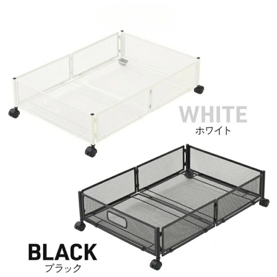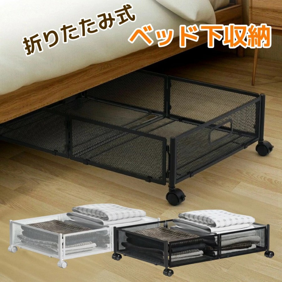 キャスター付きで出し入れ簡単な、メッシュタイプのベッド下収納ラックです。