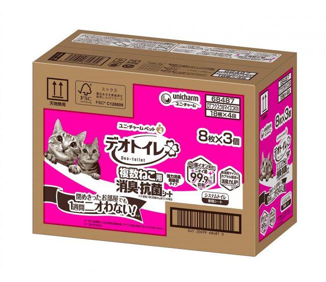 サイズ:高さ234×幅156×奥行312mm◆商品名:ユニ・チャームデオトイレ複数ねこ用消臭・抗菌シート8枚×3個セットシステムトイレシート猫トイレねこトイレ