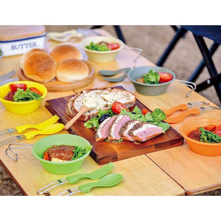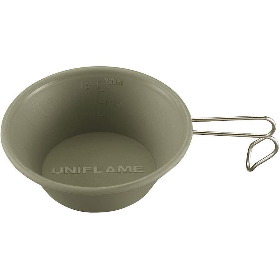 カラフルなシェラカップシリーズ。容量約300mlのユニフレーム金属製シェラカップともスタッキング可能。
