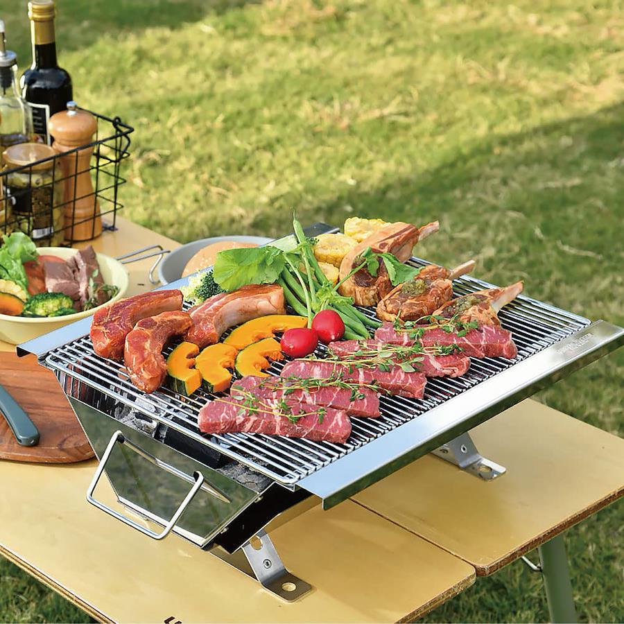 最高にタフなステンレス卓上グリル!別売UFギアバッグ25に収納可能。