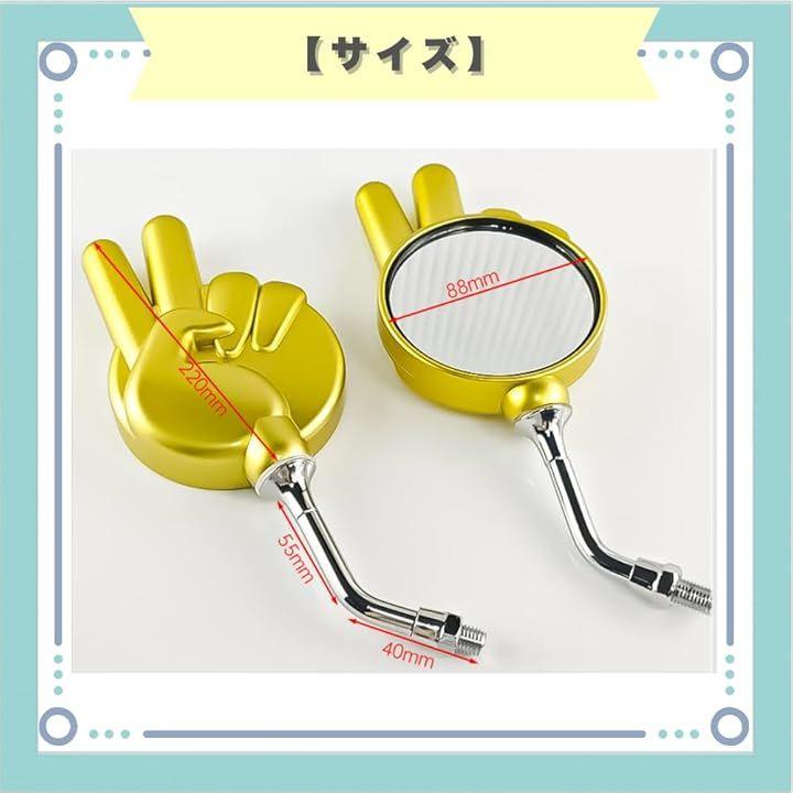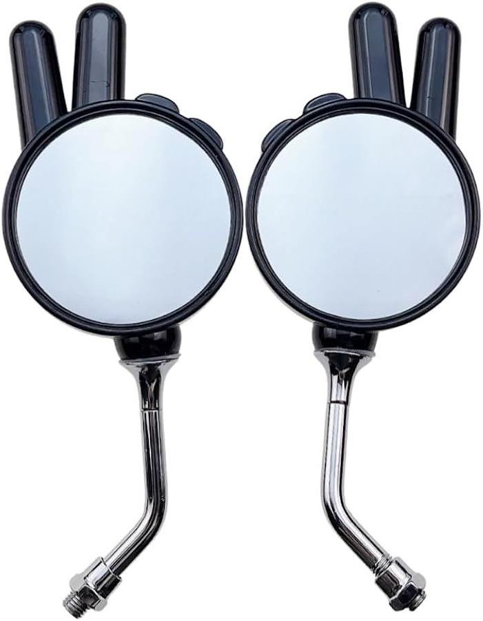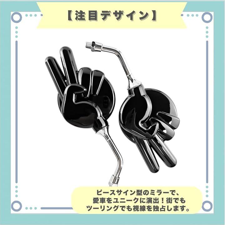 「注目デザイン」ピースサイン型のミラーで、愛車をユニークに演出。街でもツーリングでも視線を独占します。