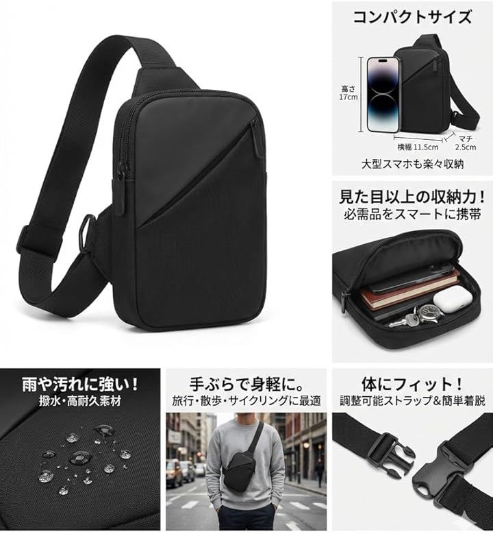 「体にフィットする設計」 チェストバッグとして体に密着するため、アクティブな動きを妨げない。