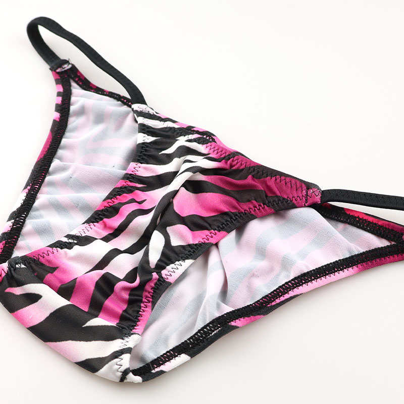 とても伸びが良く、抜群の伸縮性を誇るSLKS生地を使用したハーフバックビキニ。柔らかくシルキーな質感で、まるで第二の肌のように身体にフィットし、長時間の着用でも快適な履き心地を実現します。デザインは、クールでスタイリッシュなゼブラプリントを採用。存在感がありながらも洗練された印象で、視線を惹きつけます。nanoビキニならではのコンパクトなシルエットでありながら、窮屈感を抑え、美しいラインを演出します。機能性を兼ね備えた一枚で、日常使いはもちろん、特別なシーンやランジェリーを楽しみたい方にもおすすめのTバックビキニです。置き寸で股上約12.5cm。