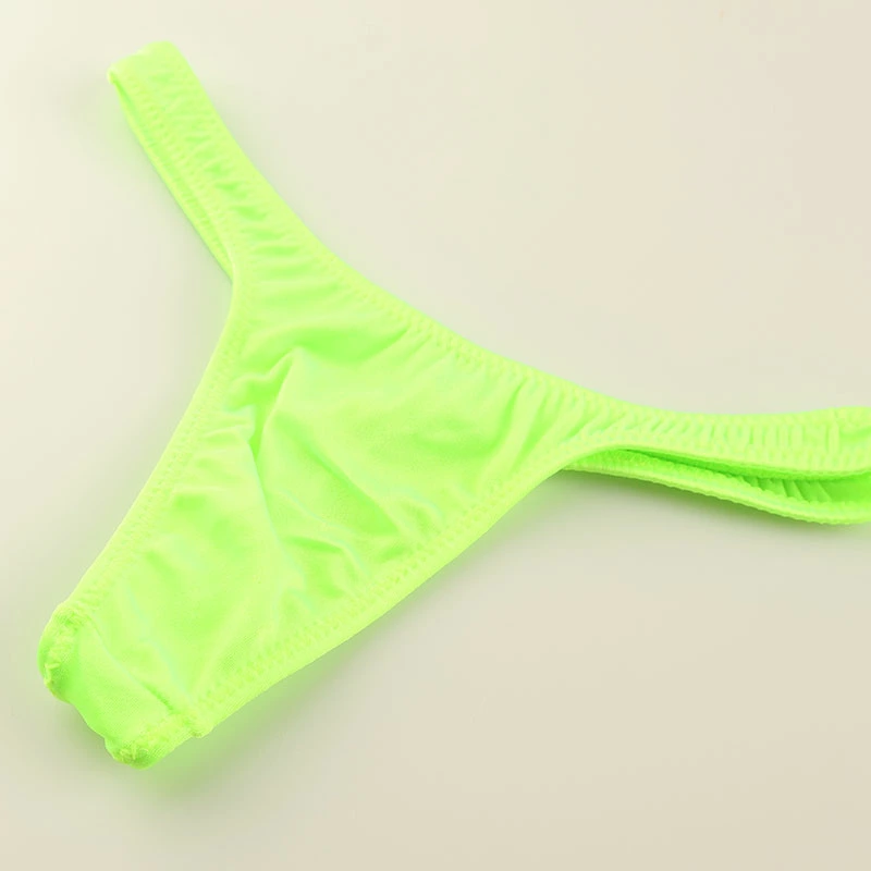 微かなキラキラとした光沢が煌めく中、心地よいサラサラ感が広がり、柔らかな肌触りとストレッチ性を兼ね備えたTSK生地を使用したTバックビキニになります。見た目も小さく股上も浅くなったタイトなパターンの極小下着になります。