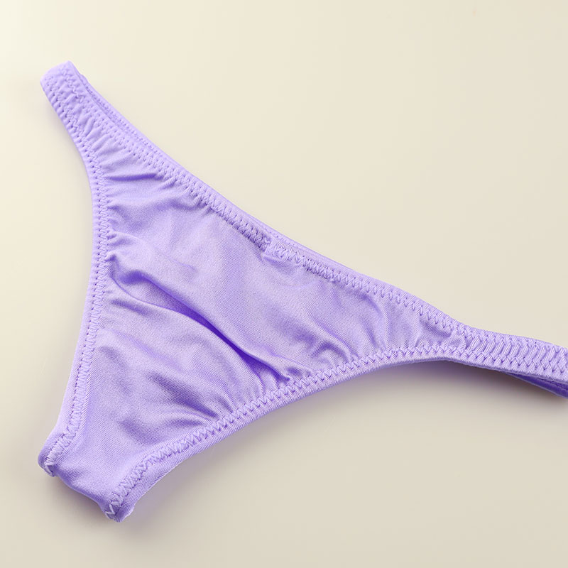 微かなキラキラとした光沢が煌めく中、心地よいサラサラ感が広がり、柔らかな肌触りとストレッチ性を兼ね備えたTSK生地を使用したハーフバックビキニになります。見た目も小さく股上も浅くなったタイトなパターンの極小下着になります。