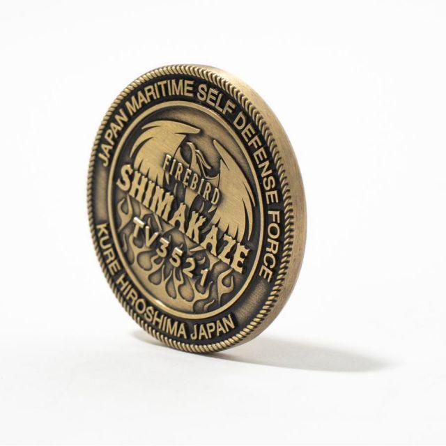 商品名:部隊識別コイン メダル 練習艦 しまかぜ Type2 火の鳥 ( ゴールド ) 直径4.5cm 自衛隊 グッズ チャレンジコイン 記念 コレクション練習艦しまかぜの広報用グッズであるコインをデザイン、作成させていただきました。広報の目的だけでなく、他国の海軍との交流の際に友好の証として交換されることの多いアイテムの一つです。2021年3月19日、第4護衛隊群第8護衛隊(佐世保基地)から練習艦に種別変更し、第1練習隊、練習艦として呉に就航した「しまかぜ」。「練習艦しまかぜ」の勇ましい艦影と火の鳥、ニックネームの「FireBird」をイメージした部隊のスコードロンを裏表にあしらい、重厚感のあるデザインに仕上がっています。大きさ:直径4.5cm・厚さ4mmカラー:ゴールド商品番号:G1975