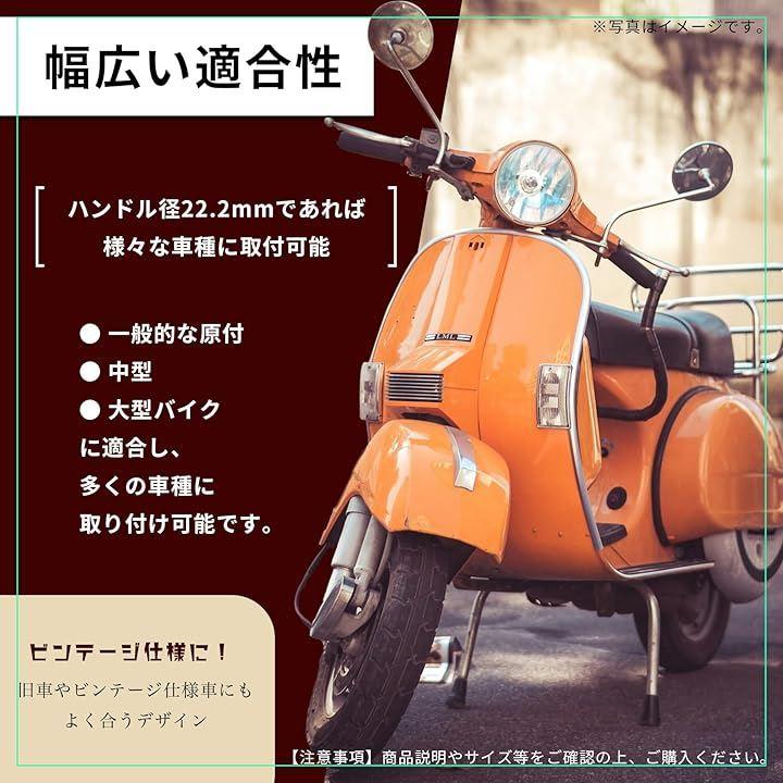 ハンドルクランプタイプなので、自由な位置に取り付け可能で、バイクの外観を一層引き立てます。