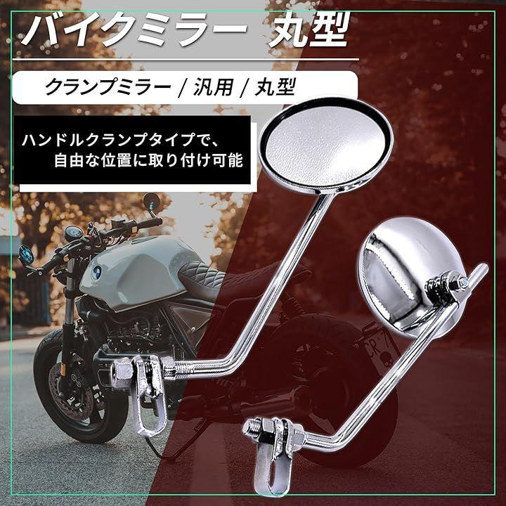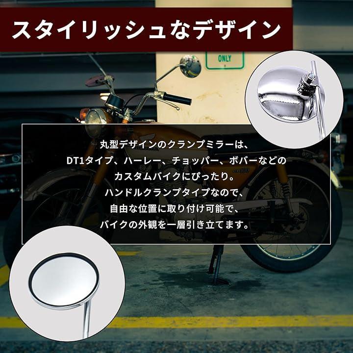 「スタイリッシュなデザイン」丸型デザインのクランプミラーは、DT1タイプ、ハーレー、チョッパー、ボバーなどのカスタムバイクにぴったり。