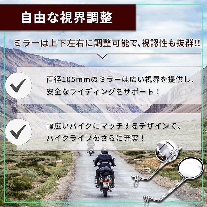 直径105mmのミラーは広い視界を提供し、安全なライディングをサポートします。